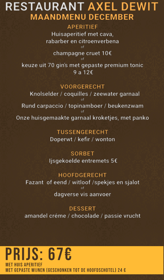 Het is hier geweten dat de chef eigenaar aan het fornuis er een zaak van maakt om zijn genodigden in de watten te leggen, door zijn kwalitatief en creatief hoogstaande culinaire creaties voor U, op het bord toveren.